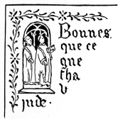 "Et quant il se leva tout esmeu, il trouva icelluy qui mourait de froit, il le porta en sa maison, et alluma du feu, et se estudia à le chauffer, et comme il ne le pouvait eschauffer nullement, il se doubta qu'il ne défaillit par froit, et le porta en son lict, et le couvrit dilligemment. Et, un peu après, celui qui lui était apparu comme malade et lépreux monta très resplendissant ès cieulx et dit à son oste: 'Julien, Notre-Seigneur m'a envoyé à toi et te mande qu'il a receu ta pénitence, et tous deulx reposerez en Notre-Seigneur dedans un peu de temps.' Tantost celluy s'évanouit (disparut). Et lors, un peu après, Julien et sa femme, pleins de bonnes œuvres et d'aulmônes, reposèrent en Notre-Seigneur."—Légende Dorée.