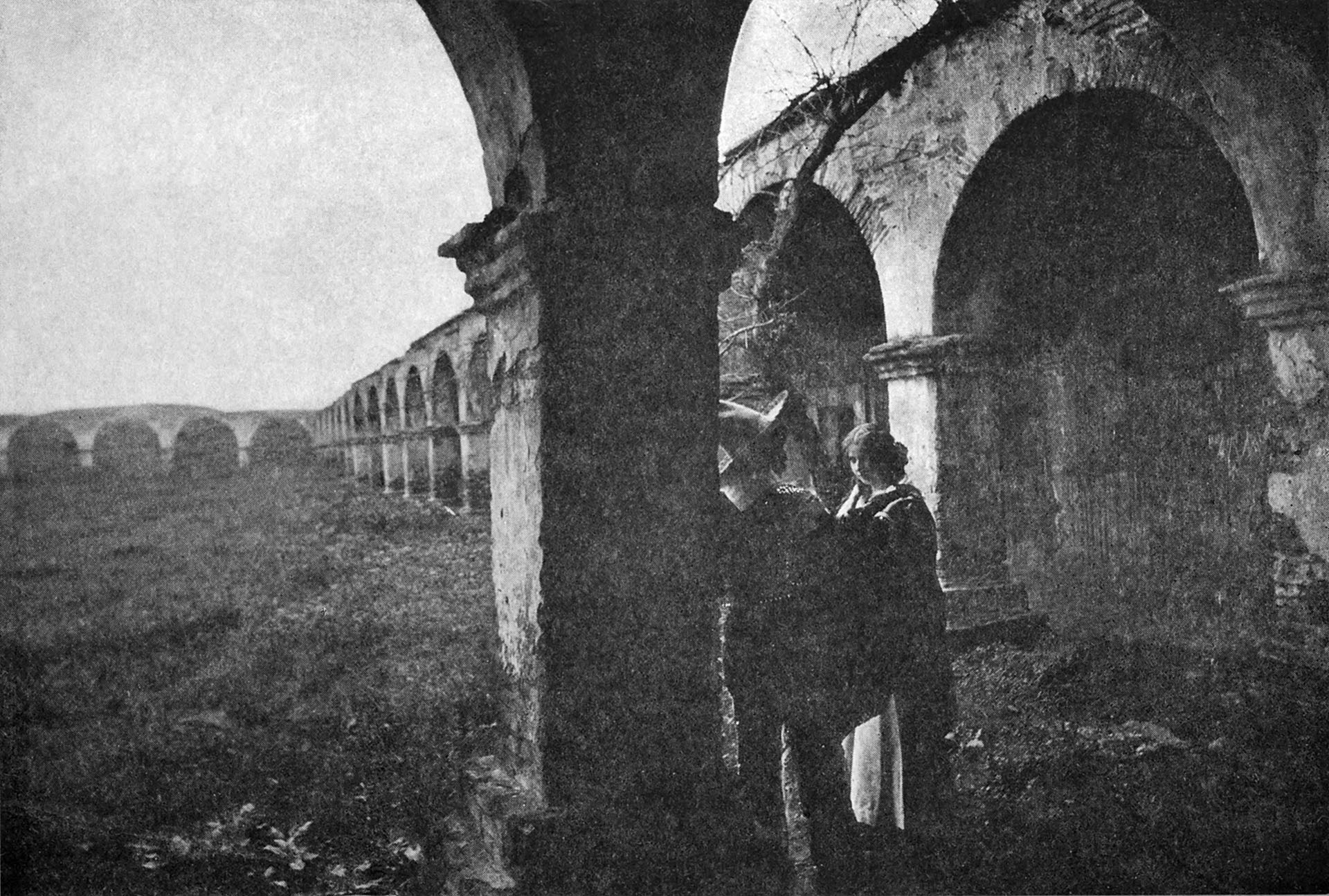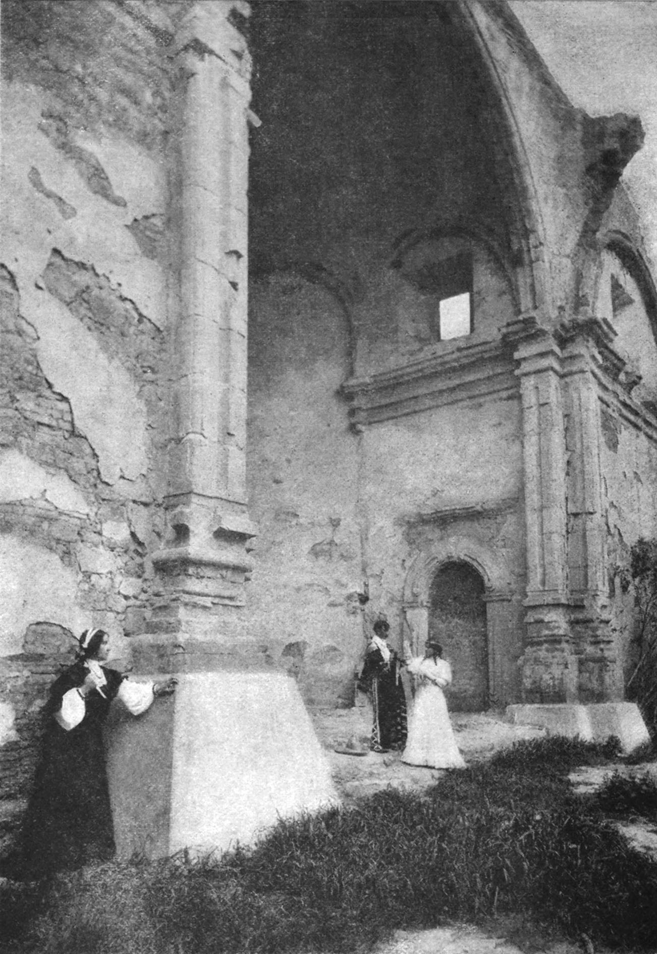 And then two persons came toward her through the arch of the old sacristy, one in the velvet and gold lace of a Spanish grandee, and the other a shimmer of brocade and pearl-gemmed lilies.