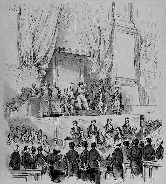 Le 7 juin 1815, Napoléon vint précéder, avant de partir pour l'armée, à l'ouverture des Chambres. Nulle distinction ne fut établie entre les pairs et les députés, et le grand-maître des cérémonies, sur l'ordre de l'empereur, invita dans les mêmes termes les uns et les autres à s'asseoir.