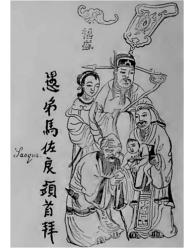 Et, en effet, M. et madame Gougibus ne sont plus capables de se transmettre davantage: ils sont hors d'âge, comme le témoigne, le portrait que nous vous donnons de ces deux illustres conjoints; portrait authentique, pris au moment où cette excellente mère et ce père excellent revenaient au logis chargés de pantins et de polichinelles pour leur To-tor. Notre héros, qui les a reconnus, les suit de loin d'un œil hagard, d'un œil de sergent de ville; il sent que le cas est grave.