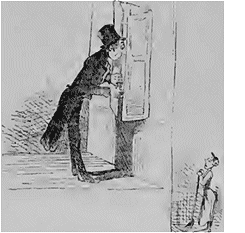 Il est quatre heures du matin... Notre héros malencontreux s'est décidé à se lever de la borne qui lui sert de lit de plume depuis minuit, et à frapper un dernier coup de marteau: ce coup est si désespéré et si lamentable, qu'enfin le portier n'y résiste plus, et tire le cordon; le malheureux entre tout joyeux; mais, ô ruse de portier diabolique! ô trame infernale! les 3 francs 50 cent. ne sont pas suffisamment expiés par toutes ces couleuvres que le récalcitrant locataire avale depuis ce matin: il faut que ce concierge sans âme, sous-prétexte de zèle, lui plonge, à bout portant, un bougeoir allumé dans la poitrine; le jabot prend feu; appelez, les pompiers!