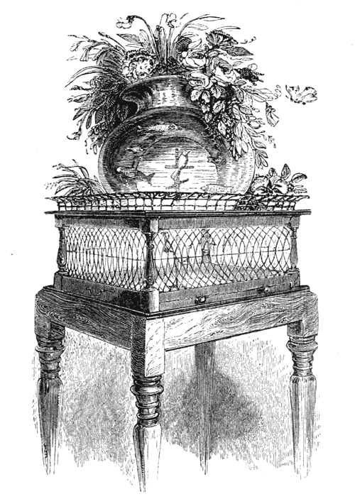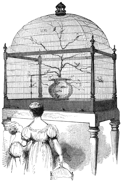 The space assigned to tame birds varies according to their nature and destination. All are less at ease in a cage than when at liberty in a room, where young pine branches, cut in winter or early in spring, should be placed for their accommodation5. Several, however, never sing unless confined within narrow limits, being obliged, as it would appear, to solace themselves, for the want of liberty, with their song; consequently, birds only prized for the beauty of their plumage or their pleasing actions, are best placed in a room. Rather large birds, such as thrushes, should have a room appropriated to them, or be kept in a large aviary, as they give a very unpleasant smell to the place which they occupy, unless carefully cleaned; but their young ones may be allowed the range of any apartment, placing in a corner a cage or branch to rest and sleep on, where they may run and hop freely, seeking a roosting-place for themselves in the evening, on the fir branches placed for that purpose; or in a cage with several divisions, into which they soon learn to retire. Some birds, such as the 5dunnock and the blue-breast, sing best in this state of liberty. It is necessary to avoid placing them with shrikes or tits, as these often, in the midst of plenty of food, will kill smaller birds, for the sake of eating the brain or intestines. Those that are confined that we may better enjoy the beauty of their song, should have a cage proportioned to their natural vivacity: a lark, for example, requires a larger cage than a chaffinch. The habits of the birds must also be considered, whether they rest on the ground or perch on sticks. Thus, the nightingale must have perches, while the sky-lark never makes use of these.