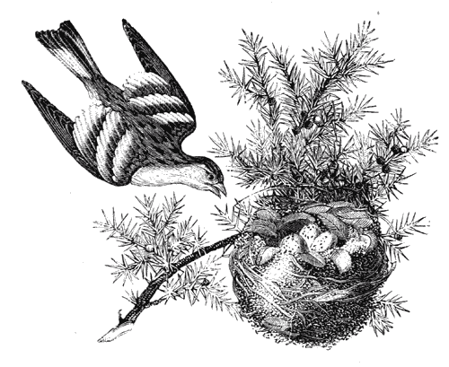 House birds, being most of them reared like canaries, can only be made pair with great difficulty. When this object is accomplished, all of them require a large quiet place, a whole room if it can be had, in which branches of pine should be put,—a place, in fact, as much as possible resembling their natural abodes. But should you succeed in this respect, as you can never procure the materials which form the general base of their nests, it is better to give them artificial ones, made of the bark of the osier, straw, or even turnings of wood, in which it is only to put the soft stuff for lining, such as wool, the ravelings of silk, linen, or cotton, and the birds will take possession of it.