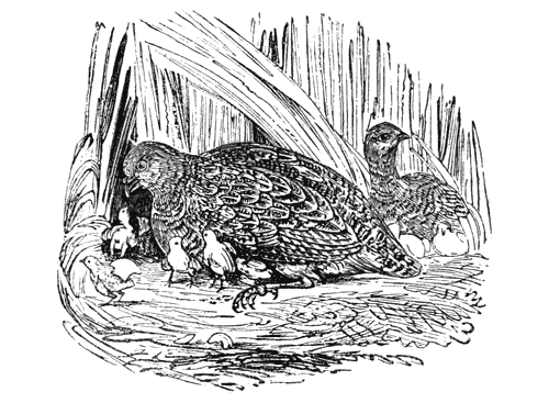 “In the month of May, a young lark was brought to me which could not feed itself; I fed it, and it could hardly peck up, when a brood of four young ones of the same species was brought to me from another place. She exhibited a singular affection for these new comers, which were not much younger than herself; she nursed them day and night, warmed them under her wings, and pushed the food into their mouths with her beak; nothing could distract her from these interesting duties. If she was removed from the young ones, she flew back to them as soon as she was free, without ever thinking of escaping, as she might have done a hundred times. Her affection increased so much that she literally forgot to eat and drink; and she lived only on the food which was given to her as well as to her adopted young, and she died at length, consumed by this sort of maternal passion. None of the young survived her, they died one after the other, so necessary had her maternal cares become to them; so entirely were these cares produced by affection, and reciprocated.”