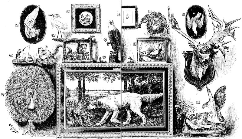 for museums and the trade; also, heads of large game, artistic articles for household ornament and utility, such as picture groups, panels, screens, and many original novelties in fur and feather, unique in design,