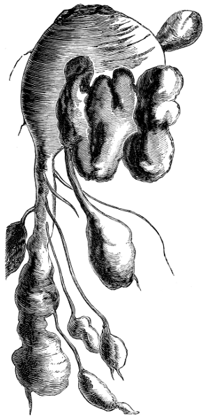 It is now time to tender our best acknowledgements for the aid we have received in the many drawings with which this small work has been so liberally illustrated. We owe especial thanks to Mr. Hardwicke for several fine plates of interesting agricultural as well as botanical specimens; to the Royal Agricultural Society of England for the loan of the woodcuts of roots; and to our friend Mr. Wheeler, of Gloucester, for the use of the woodcut illustrations of grasses; and as both the drawings of roots and grasses were made by us direct on the wood, rough though they may be, we yet hope[358] they may be deemed more faithful than any second-hand copy.