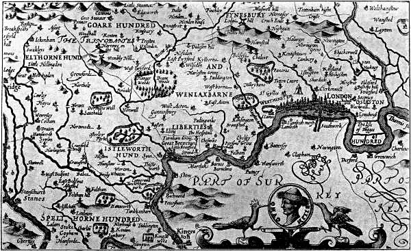 | London and the Thames, from Speed’s Map, 1610 | Frontispiece |