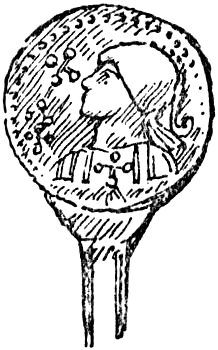 | Fig. 10.—Head of a Pin found in London. Now in the British Museum. A little less than full size. The subject seems to represent Constantine’s vision of the Cross | 24 |