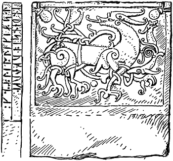 | Fig. 31.—Ninth or Tenth Century Tombstone from St. Paul’s Churchyard. Inscribed in runes. Now in the Guildhall Museum | 164 |