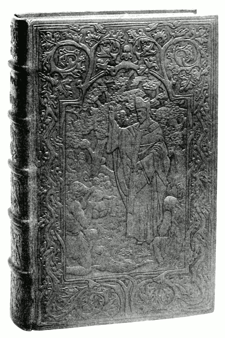 In the Middle Ages precious stuffs adorned with enamels, ivory and gold were discarded as covering for the beautiful manuscripts executed by the monks, and in their place heraldic subjects in carved and modelled leather were introduced and lent a new character to books which were no longer the exclusive property of crowned heads. The invention of printing afforded the Renaissance movement the means of attaining its full development, and soon called for a less archaic binding for its incunabula. Leather either decorated in mosaic or tooled in gold formed a perfect covering for these marvels of typography, and from the end of the fifteenth century to the present revival of decorated leather both styles have been much in use.