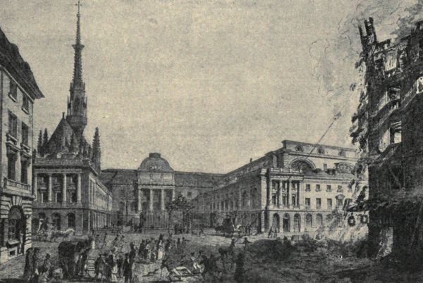 CORNER PAVILION OF THE LOUIS XV. SQUARESevered heads were exhibited by the executioner at the four corners of the huge Square: Danton, Camille Desmoulins, Hérault de Séchelles, Charlotte Corday, Madame Roland, Louis XVI., Marie Antoinette, and Robespierre. A dreadful pell-mell, a disastrous butchery; the ground was red with blood. Then followed the soldiers of the Empire, singing as they defiled, on entering the Tuileries to cheer their triumphant Emperor at his return from some victorious campaign.