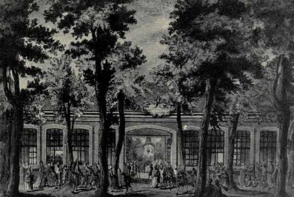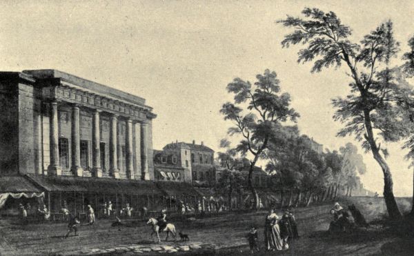 The Champs Elysées are of almost modern creation. A decade ago, the fine avenues surrounding the Arc de l'Etoile—the Avenue Kléber, the Avenue Wagram, the Avenue Niel, the Avenue de l'Alma—offered most picturesque contrasts; beside a sumptuous mansion, subsisted wretched little houses, remains of old hovels that once were scattered all over this luxurious quarter, where now nothing recalls the waste pieces of land, dangerous even to cross, of sixty years ago. Under the Directory, Madame Tallien's cottage (Notre Dame de Thermidor, she was called) to which the Incroyables and the Merveilleuses dared not go without escort, was[Pg 318] situated as far up as the Avenue Montaigne. Dancing-gardens and open-air bars occupied the space now filled by restaurants and cafés-concerts. An engraving by Carle Vernet shows us a Cossack encampment round a humble, country-looking inn. Now the Le Doyen restaurant stands there!