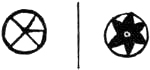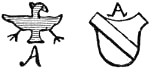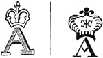 | FIRST ROYAL EPOCH 1745 to 1792 ![]() ![]() ![]() Vincennes. The letter A denotes the year 1753, continued to 1777. (Louis XV.) ![]() Sevres. Ornamented LL’s. Date 1764. ![]() Sevres. Date 1778. (Louis XVI). Double letters continued to 1793. FIRST REPUBLICAN EPOCH 1792 to 1804 ![]() [Pg 34] ![]() ![]() ![]() ![]() 1792 to 1799. ![]() 1801 to 1804. FIRST IMPERIAL EPOCH. 1804 TO 1814. ![]() Napoleon. 1804 to 1809. ![]() Napoleon. 1809 to 1814. SECOND ROYAL EPOCH. 1814 TO 1848. ![]() Louis XVIII 1814 to 1823. ![]() Charles X. 1824 to 1829. ![]() Charles X. 1829 and 1830. [Pg 35] ![]() Charles X. 1830. ![]() ![]() Louis Philippe. 1831 to 1834. ![]() Louis Philippe. 1834-1835. ![]() On services for the Palaces. ![]() Louis Philippe. 1845-1848. ![]() After 1848, this mark in green was used for white porcelain. SECOND REPUBLICAN EPOCH 1848 TO 1851. ![]() The S stands for Sèvres, and 51 for 1851. SECOND IMPERIAL EPOCH. 1852 TO 1872. ![]() [Pg 36] ![]() Napoleon III. From 1852. ![]() This mark used for white pieces; when scratched it denotes issue undecorated. | ||