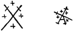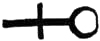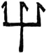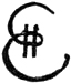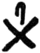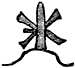 | Present mark. This mark with two scratches across it shows imperfect pieces which may or may not have been decorated in the factory. Hard paste. | |