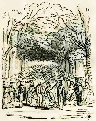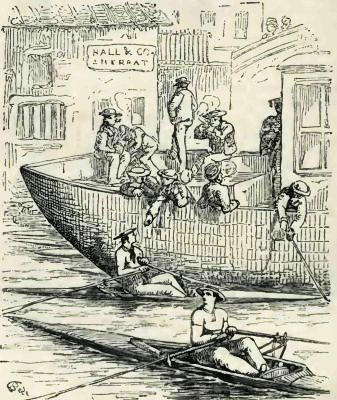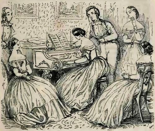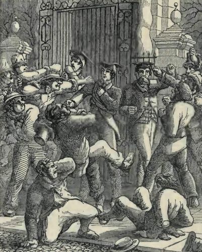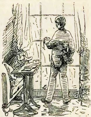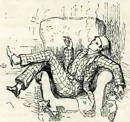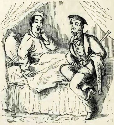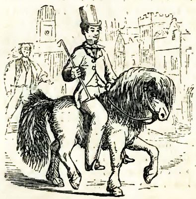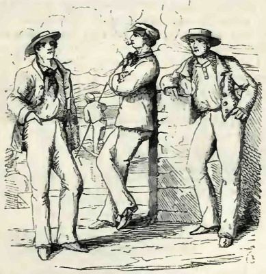One morning, Mr. Verdant Green and Mr. Bouncer were lounging in the venerable gateway of Brazenface. The former gentleman, being of an amiable, tame-rabbit-keeping disposition, was making himself very happy by whistling popular airs to the Porter's pet bullfinch, who was laboriously engaged on a small tread-mill, winding up his private supply of water. Mr. Bouncer, being of a more volatile temperament, was amusing himself by asking the Porter's opinion on the foreign policy of Great Britain, and by making very audible remarks on the passers-by. His attention was at length riveted by the appearance on the other side of the street, of a modest-looking young gentleman, who appeared to be so ill at ease in his frock-coat and "stick-up" collars, as to lead to the strong presumption that he wore those articles of manly dress for the first time.