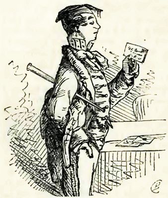 "How?" replied Mr. Bouncer, still more sternly; "do you mean to brazen out your offence by asking how? What could have induced you, sir, to have had printed on this card the name of this College, when you've not a prospect of belonging to it—it may be for years, it may be for never, as the bard says. You've committed a most grievous offence against the University statutes, young gentleman; and so this gentleman here—Mr. Pluckem, the junior examiner—will tell you!" and with that, little Mr. Bouncer nudged Mr. Verdant Green, who took his cue with astonishing aptitude, and glared through his glasses at the trembling Mr. Pucker, who stood blushing, and bowing, and heartily repenting that his school-boy vanity had led him to invest four-and-sixpence in "100 cards, and plate, engraved with name and address."