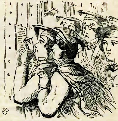 "I'm afraid, young gentleman," said Mr. Four-in-hand Fosbrooke, as he carelessly settled his white tie and bands, "I am afraid, Mr. Pucker, that your learning is not yet up to the Brazenface standard. We are particularly cautious about admitting any gentleman whose acquirements are not of the highest order. But we will be as lenient to you as we are able, and give you one more chance to retrieve yourself. We will try a little vivâ voce, Mr. Pucker. Perhaps, sir, you will favour me with your opinions on the Fourth Punic War, and will also give me a slight sketch of the constitution of ancient Heliopolis."