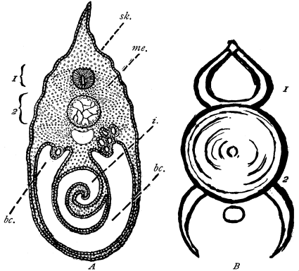 Obvious typographical errors have been corrected. Original published spelling and hyphenation have been retained as they appear in the original publication, including "debateable" and "cellless". A possible missing "wall" has not been added to the caption for Fig. 5 ("--muscular of intestine"; and reference to "the Italian poet" on Page 138 of the original publication has been preserved. Where figures or tables cut paragraphs, they were moved above or below the paragraph.