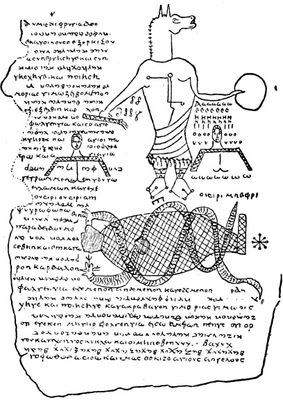 Beöthy Zsolt egyptológiai gyüjteményének papirusz-töredéke. Középen az illusztráció.