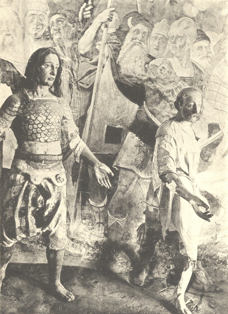 I referred to this last-named work in my book “Alps and Sanctuaries” (pp. 177, &c.), and have seen no reason to modify the opinion I then expressed. I may repeat that about twenty years ago I was much struck with the painting and could not make out its strong and evidently unaffected medieval feeling, yet modernness at the same time. On consulting the Sacristan I learned that Dedomenici had died about 1840. He added that the extraordinary thing was that Dedomenici had never studied painting, and had never travelled out of the Valsesia; that he had, in fact, acquired his art by doing rather than by learning how to do.