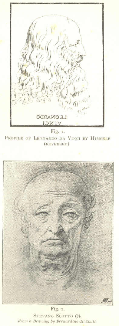 Bernardino de Conti’s Drawing of Stefano Scotto, and Profile of Leonardo da Vinci by himself (reversed) |