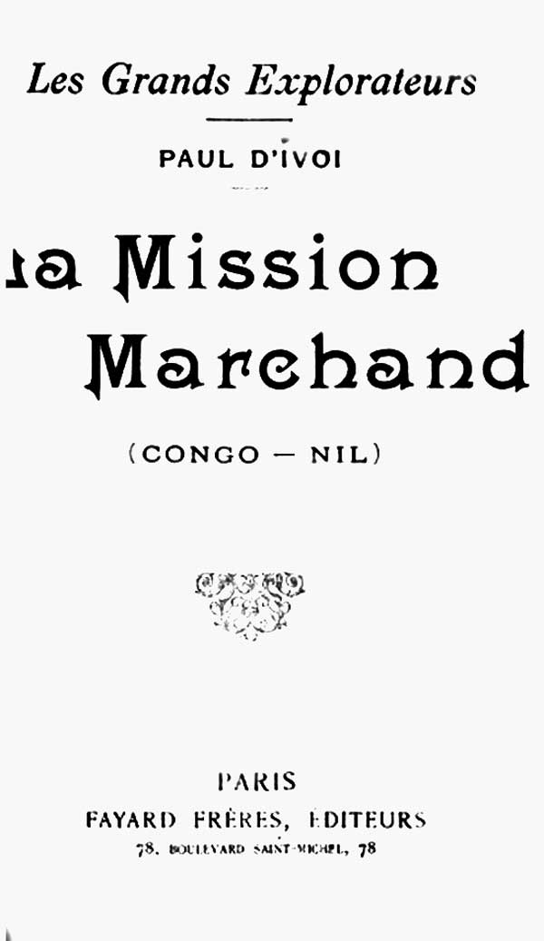 Enfin, au début de l'année 1896, le commandant Marchand[1] fut désigné pour former et diriger la mission.