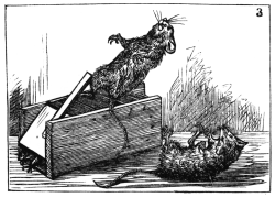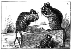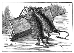 | Still happier thought: a wall its aid extends; And Brownie, thankful for such clever friends, | Darts out in triumph, bearing high the cheese, Then shares the well-won spoil, and feasts at ease. |