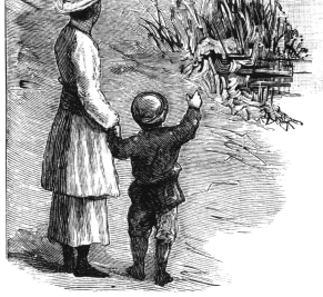 By and by they came struggling up the bank, one after another,—eight of them,—and stood panting and dripping to rest a little. Scarcely had they set their feet on dry land when a little ferry-boat came steaming along, and just as she got close to the bank she blew a long, loud whistle.