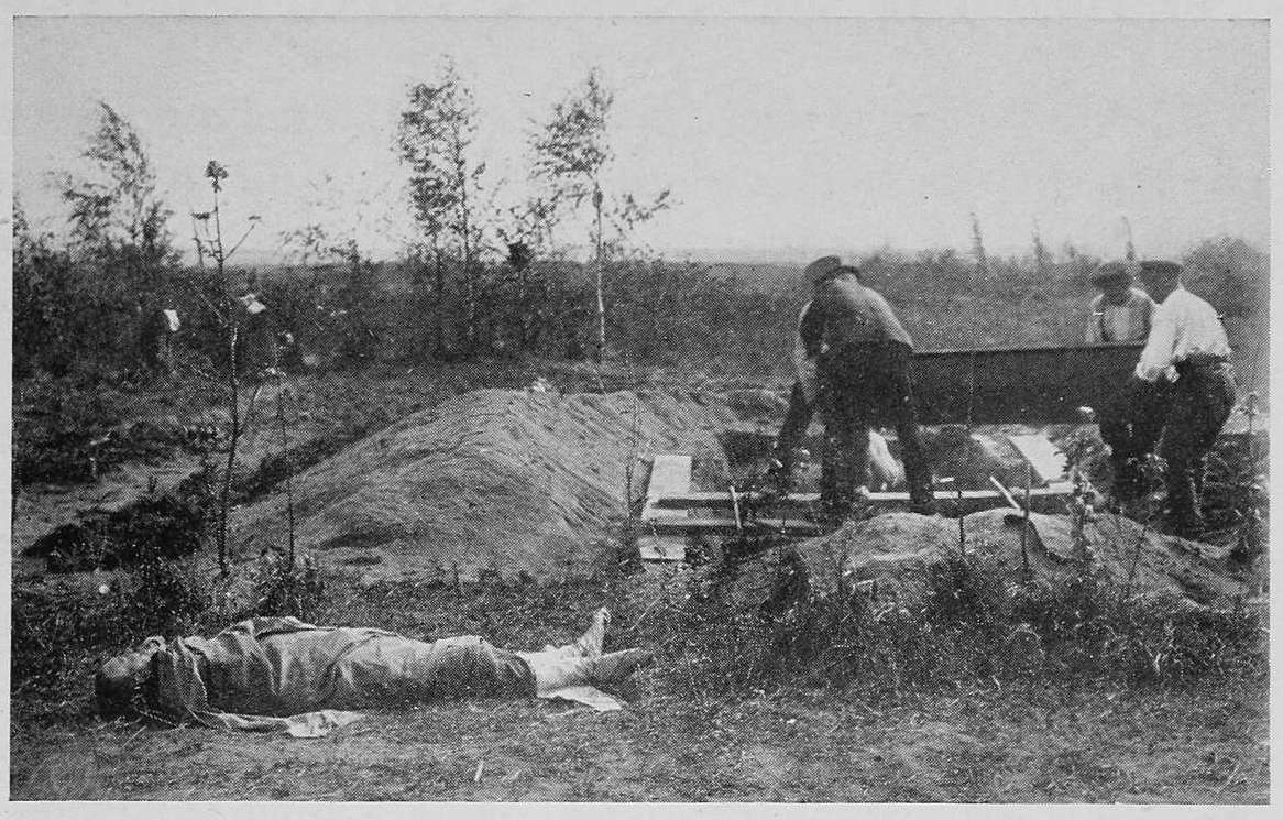 We then sat in the lobby for two hours, buying beer for the convalescents and listening to their stories. One man told us how, with two hundred soldiers, he had hid in a Russian barn, and that a shrapnel shell flying through the window had exploded, killing and wounding nearly every one in his company. Another told how he had been on outpost duty with seven other men, and that the Russians had begun machine gun fire at night. All his comrades were either killed or wounded, and he said that although he was only wounded in the arm, he did not dare to get up because[309] the Russians maintained a steady fire for four hours, and that all he could do was to hug the ground with the bullets whizzing over him, knowing that he was growing weaker and weaker every moment. Another had a most interesting experience. While in a shallow trench, he had been hit in the arm and in the leg. The hospital corps got him. The stretcher bearers were taking him back, when suddenly it got too hot for them, and they had to drop him and run for cover. The firing ceased, and, seeing he was alone, the soldier crawled over to a dead German and picked up his rifle. He was half sitting with this in his lap, when he saw some Russians coming. He raised the gun and they ran, and then he discovered they were hospital men. He was cursing his luck, when one of his comrades, a little fellow, who had come back to find him, discovered him. They traveled back to the German lines at intervals of ten minutes, the little fellow having to put him down to rest every so often. Then the doctor began to tell me something about the wounds he had seen as the result of this war.