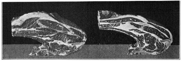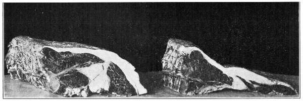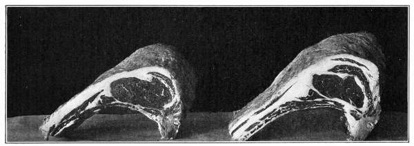 These materials vary so much in appearance that they would seem to have nothing in common. If, however, we compare the food of different animals and different races of men, we cannot but conclude that this is a mistaken judgment. We find an animal like the lion feeding entirely upon the flesh of other animals, and a strong creature like the ox, eating nothing but grass and grain. We also note that one race of men includes meat in its diet, and another subsists almost entirely upon vegetable food, such as rice and beans. Yet in both cases, these diverse kinds of food accomplish the same end,—body building and the supplying of energy. Let us study two common foods, from the two kingdoms, and see if through this study we can discover in what ways they are alike.