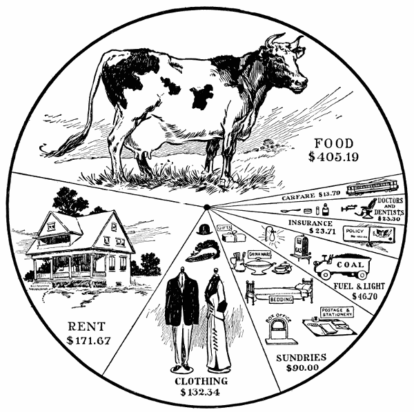 [22] The apportionment of the income to the different expenses of living (food, clothing, shelter, etc.) is discussed in Chapter XIX. It will be found that the smaller the income the higher is the percentage of it which must be allowed for food.