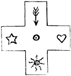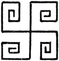 | Swastikas with four arms crossing at right angles, ends bent to the right | 846 |