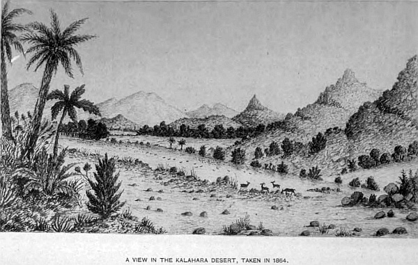 When I undertook this work in 1863 no information could be obtained as to what was beyond our colonial frontier, except that a great part was desert land uninhabited, except in parts by wild Bushmen, and the remaining region beyond by lawless tribes of natives. I at once saw there was a great field open for explorations, and I undertook that duty in that year, being strongly impressed with the importance, that eventually it would become (connected as it is with our South African possessions) of the highest value, if in our hands, for the preservation of our African colonies, the extension of our trade, and a great field for civilising and Christianising the native races, as also for emigration, which would lead to most important results, in opening up the great high road to Central Africa, thereby securing to the Cape Colony and Natal a vast increase of trade and an immense opening for the disposal of British merchandise that would otherwise flow into other channels through foreign ports; and, at the same time, knowing how closely connected native territories were to our border, which must affect politically and socially the different nationalities that are so widely spread over all the southern portion of Africa. With these advantages to be attained, it was necessary that some step should be taken to explore these regions, open up the country, and correctly delineate its physical features, and, if time permitted, its geological formation also, and other information that could be collected from time to time as I proceeded on my work. Such a vast extent of country, containing 2,000,000 square miles, cannot be thoroughly explored single-handed under many years’ labour, neither can so extensive an area be properly or intelligibly described as a whole. I have, therefore, in the first place, before entering upon general subjects, deemed it advisable to describe the several river systems and their basins in connection with the watersheds, as it will greatly facilitate and make more explicit the description given as to the locality of native territories that occupy this interesting and valuable portion of the African continent, in relation to our South African colonies. And, secondly, to describe separately each native state, the latitude and longitude of places, distances, and altitudes above sea-level, including those subjects above referred to. All this may be considered dry reading. I have therefore introduced many incidents that occurred during my travels through the country from time to time. To have enlarged on personal events, such as hunting expeditions, which were of daily occurrence, would have extended this work to an unusual length, therefore I have taken extracts from my journals to make the book, I trust, more interesting, and at the same time make physical geography a pleasant study to the young, who may wish to make themselves acquainted with every part of the globe. This is the first and most important duty to all who are entering into commercial pursuits, for without this knowledge little can be done in extending our commerce to regions at present but little known.