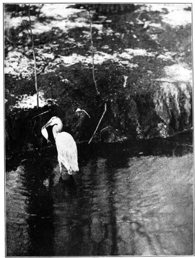 It was only a few months ago that this same dreamer found himself on the shore of Delaware Bay, with the three friends who had gone adventuring with him for so many happy years. In the middle of a maze of woods and swamps shrouded in[Pg 226] clouds of low-lying mist, they found at last the nest of the bald eagle for which they were searching. It was in the top of a towering sour-gum tree, and the great birds circled around, giving futile little cries that sounded like the squeaking of a slate pencil. As it was too misty to photograph the nest and the birds, the party started off exploring until the light became better.