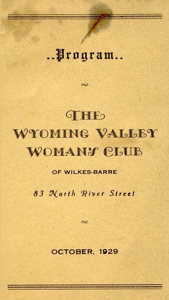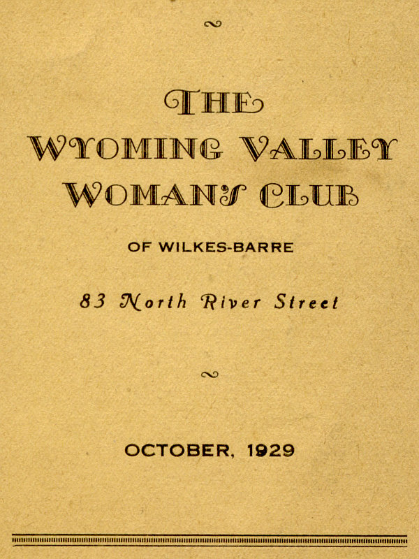 Title: Program for October 1929: The Wyoming Valley Woman's Club of Wilkes-Barre