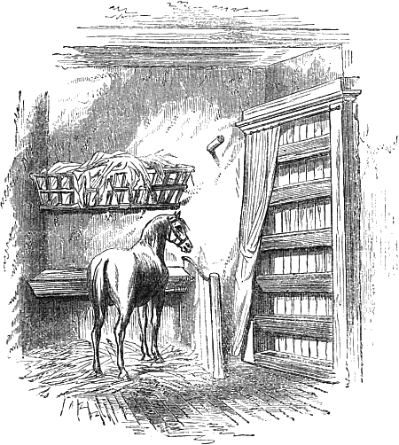 “I had a large, open, airy shed at command, but it was liable to be affected by changes in the weather, and was altogether too draughty and cold in winter, and too hot in summer. I built within this shed, with rough fir boards, an inner shed, 18 ft. long, 6 ft. wide, and 8 ft. in height; two receptacles for beds were formed, one on the floor, the other above it: and to give the requisite heat in winter, I passed a flue, formed of 9-in. socket pipes, through the house; with this I can always command an adequate amount of heat. The material of which the beds are formed is chiefly droppings, collected from an enclosed and covered exercise ground. These droppings are trampled by the horses, and mixed with straw broken up with the manure by the passage of the horses.