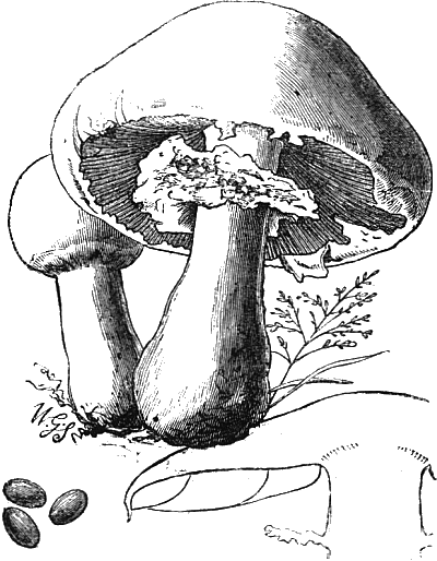 “There are families in America that for generations have freely and annually eaten mushrooms, preserving a habit brought from Europe by their ancestors. In no case have I heard of an accident among them. I have known no instance of mushroom-poisoning in this country, except where the victims rashly ventured upon the experiment without knowing one species from another. Among the families above mentioned, I have not met[152] with any whose knowledge of mushrooms extended beyond the common species (A. campestris), called pink gill in this country. Several such families live near me, but not one of them was aware, until I informed them, that there are other edible kinds. Everything but the pink gill, which had the form of a mushroom, was to them a toadstool, and poisonous. When I first sent my son with a fine basket of Imperials (A. Cæsareus), to an intelligent physician, who was extravagantly fond of the common mushroom, the lad was greeted with the indignant exclamation, ‘Boy, I wouldn’t eat one of those things to save your father’s head!’ When told that they were eaten at my table, he accepted them, ate them, and has eaten many a one since, with all safety and with no little relish. Since that time our mycophagists eat whatever I send them, without fear or suspicion.