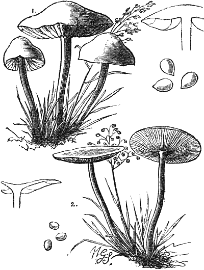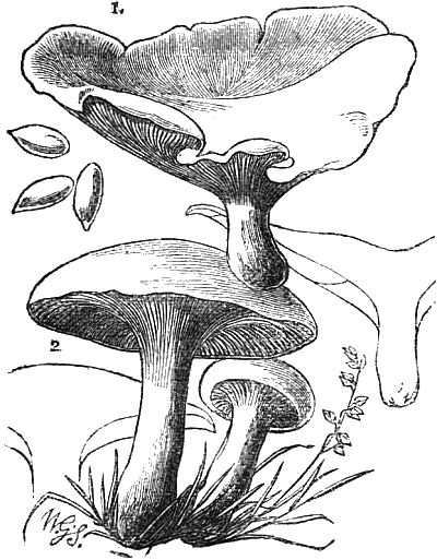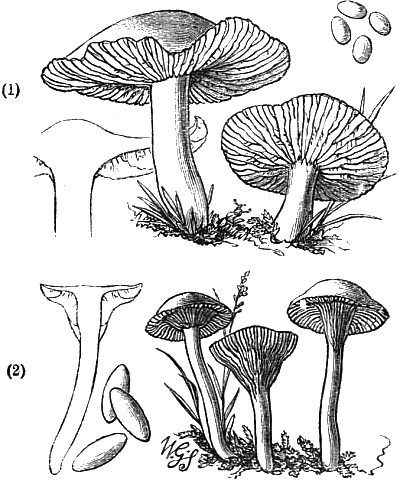 Fig. 41. (1) Agaricus orcella and (2) Agaricus prunulus (Plum Mushroom).