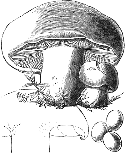 “Experience and observations like these would perhaps justify the inference that an innocent species may sometimes be deleterious, on account of its taking up some bad element from the soil. But as I have never known a case of poisoning in families that are well acquainted with the common mushroom or pink gill, that gather the specimens for themselves, and have used this article of food annually for many generations, I cannot agree with a suggestion somewhere made by you, that perhaps all mushrooms contain a poisonous element, but some of them in[158] such small quantity as to have no appreciable effect. Now, had you seen the quantities of stewed mushrooms swallowed at a single meal which I have seen thus devoured, and with no more harm than from the same amount of oyster or turtle soup, I think you would be forced to the conclusion that such an amount, even of poisonous infinitesimals, must have had some very unpleasant manifestations, or else be a very innocent diet.