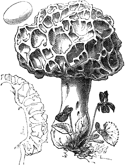 Fig. 37. Morchella esculenta (the Morel). Woods, &c., in the spring;