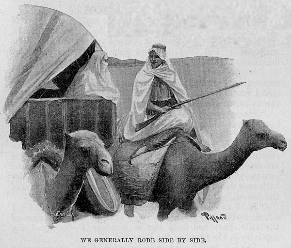 After three years among the True Believers, I had at last overcome most of the difficulties of language, and could converse with them in their own tongue. It may have been this which commended itself to pious old Ali Ben Hafiz, for throughout our journey he was particularly gracious, though he bored me sometimes with his constant objurgatory remarks regarding Infidels in general and myself in particular. Once in exuberance of spirits I so far forgot myself as to whistle a popular English air, and although we were excellent friends, he reprimanded me so severely that I am not likely to forget that among the followers of the Prophet whistling is forbidden.