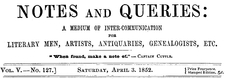 Notes and Queries Vol. V.