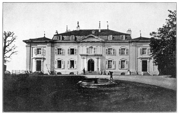 I also made a study of Voltaire’s life, and read a great deal of his writings. I prepared an article on his theatrical ventures. One of his châteaux was Monrion (which means mons rotundus) on the crest between Lausanne and the lake. It was a square two-story building with high attic and L-shaped wings. It had twenty-four rooms with superb views. He did[Pg 464] not live in it long, and it passed into the hands of Dr. Tissot. Voltaire moved into a house in Lausanne, 6, Rue du Grand Chêne, and here he gave theatrical entertainments. He also organized them at Monrepos, a château then owned by the Marquis de Langalérie. The stage was in the barn but the spectators were in the house. He wrote his friends about the success of them: “I play the old man, Lusignan.... I assure you, without vanity, that I am the best old fool to be found in any company.” To his friend Thiriot: “I wish that you had passed the winter with me at Lausanne. You would have seen new pieces performed by excellent actors, strangers coming from thirty leagues around, and my beautiful shores of Lake Leman become the home of art, of pleasure, and of taste.” To his niece, Madame de Fontaine: “The idlers of Paris think that Switzerland is a savage country; they would be very much astonished if they saw ‘Zaire’ better played at Lausanne than it is played at Paris; they would be still more surprised to see two hundred spectators as good judges as there are in Europe.... I have made tears flow from all the Swiss eyes.” When he moved to Geneva, and especially when he bought the château of Ferney, so that he might be a thorn in the flesh of Genevese sanctimoniousness, he was older, but still played his parts.