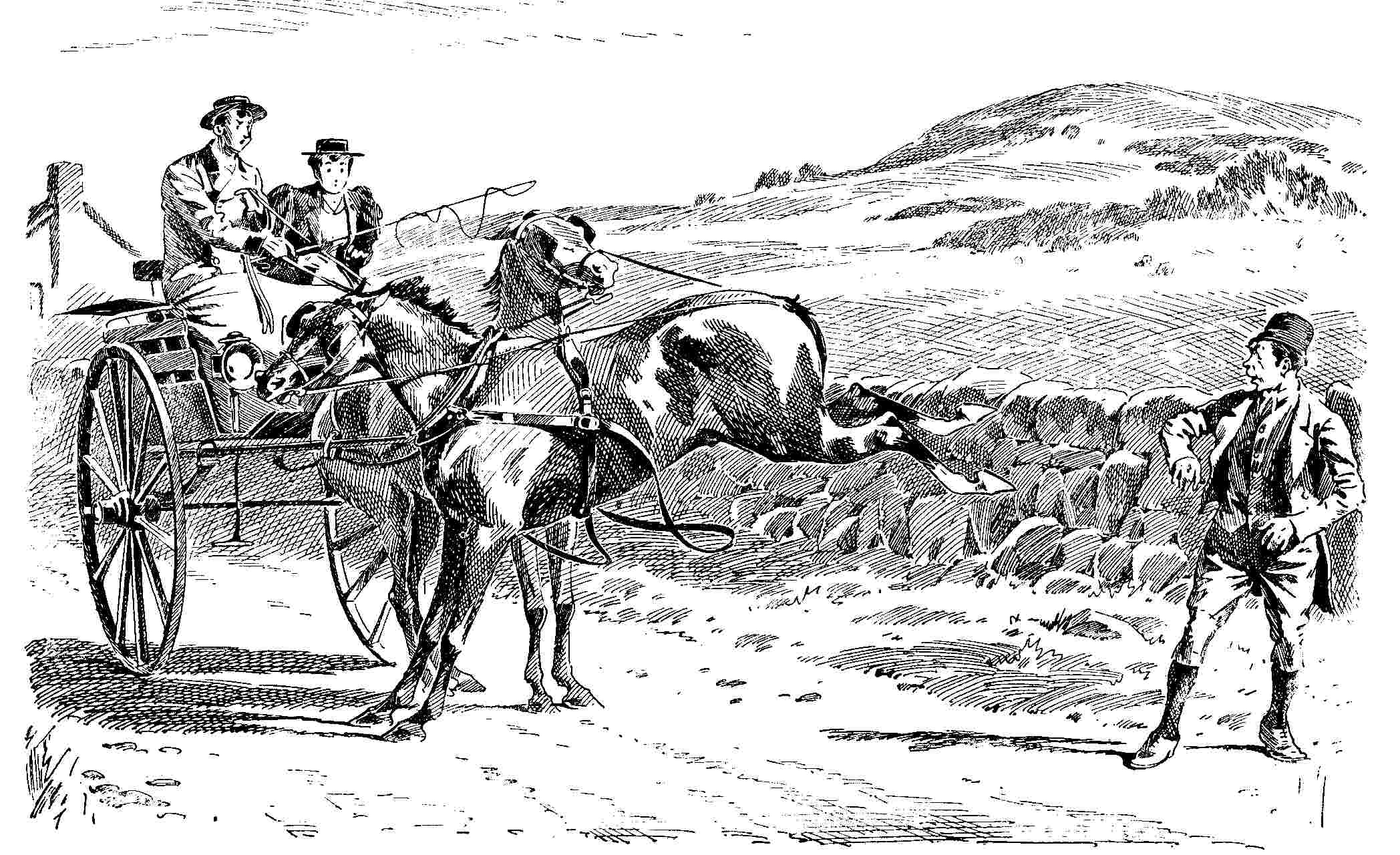 SCENE—Jones doing Honeymoon Driving Tour in Ireland. His Leader has just got one of the reins under his tail, and is lashing out vigorously.