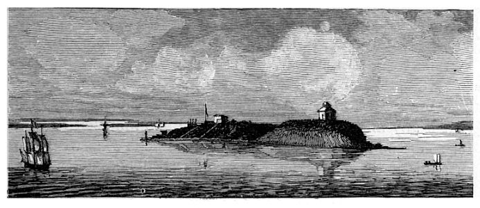 This is the most suitable place for making mention of the Saratoga monument, which was erected in 1883, but is not yet completed. The obelisk, 155 feet in height, stands upon a bluff about 300 feet above the Hudson river, and just south of the road from Schuylerville to Saratoga Springs. The view here given is taken from the southeast. The great pointed-arch niches in the base, just over the doorways, are occupied by bronze statues of heroic size. Of these it was necessary that one should be the unworthy Gates, who commanded the army and received Burgoyne’s surrender. The second and third are obviously Schuyler and Morgan. The fourth niche is vacant. The place belongs to Arnold, who was especially the hero of Saratoga. But for Arnold, the relieving army of St. Leger might have come down the Mohawk valley. But for Arnold, the 19th of September would have seen Gates’s position turned at Bemis Heights. But for Arnold the victory of October 7th would probably have been indecisive, so that time would have been allowed for Clinton to come up the Hudson. In commemorating Saratoga, to leave Arnold unnoticed would be impossible. He has therefore his niche, but it is vacant. When the monument is completed, the names of the four generals are to be inscribed below their niches, and then the empty niche will speak as eloquently as the black veil that in the long series of portraits of Venetian doges covers the place of Marino Faliero.