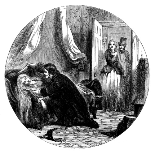 She had stood transfixed by horror, crushed in her pride, and bending to earth. As he spoke the last words, a heavy fall in the bedroom resounded in their ears. She turned hastily, and in terror gazing at the door, through which he passed in haste. Not a thought of the truth burst upon him as he raised the closely enveloped and veiled figure, fainting on the ground. Placing her on a couch, he hurriedly tore off the bonnet to give her air; as he did so, the long fair hair rolled heavily to the ground, which it swept. He uttered a cry; it was one of pain and fear—for one hurried moment something supernatural crept through his blood and stilled it—then drawing near the couch, as if a spirit lay there, he gently lifted back the fallen hair, and gliding on one knee, gazed with distended eyes on the pale, unconscious face, then, placing his lips near hers, he held his own breath to feel if she breathed. A gentle sigh came over his cheek—with that sigh the truth rushed almost in maddening power over his mind. One loud cry came from his soul; and clasping her in his arms he strained her to his breast, and wild, hysteric sobs burst from his lips, but the eyes were burning and tearless.
