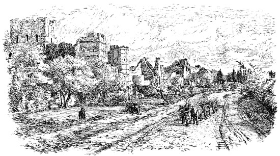 [28] Mr Oman, History of the Art of War, Middle Ages, pp. 526-7, speaks of three walls; but the scarp was quite low, and there were only two walls behind it.