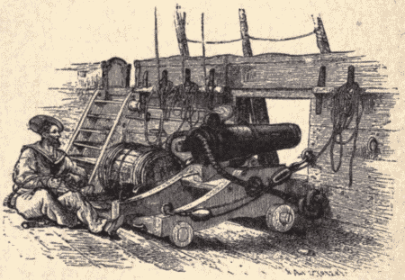On the day before the attack began, Commodore Conner, who had long been in bad health, and who would have done more wisely to give up the command before, was relieved by Commodore Perry. As the heavy guns provided by the army for the siege—the battering train—had not arrived, the army had only its mortars and a few light guns. These had no effect[Pg 334] upon the walls and bastions of the city, and General Scott suggested to Commodore Perry that he should land some of the heavy cannon from the ships. Perry answered that he would land the guns, and moreover that he would fight them. Six heavy guns, each weighing three tons, were landed, and, drawn by two hundred seamen and volunteers, they were moved during the night of the 23d three miles from the landing-place to their position in battery, seven hundred yards from the city wall. On the morning of the 24th they opened, and immediately drawing upon themselves the concentrated fire of the fortifications, they did more real execution than all the batteries which had been hitherto engaged.