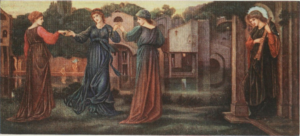 This picture is one of those on which Burne-Jones worked at intervals for several years. Commenced in 1870, and taken up and set aside time after time, it was not exhibited until 1882, when it appeared at the Grosvenor Gallery. It is an example, and a very attractive one, of the daintier side of the artist's practice, a decorative composition planned with masterly restraint and with a wholly sympathetic understanding of the charm of pure and unforced sentiment. It has both grace and distinction.