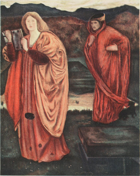 In this painting of the Delphic oracle Burne-Jones made no attempt to reconstruct archæologically an incident from classic times. The symbolism of the subject appealed to him rather than its possibilities of being represented realistically, and he treated it in a manner entirely personal, with strength and decision, but with exquisite tenderness of poetic sentiment as well. The picture has a certain intensity of feeling that is especially convincing, and its fine draughtsmanship, splendid colour, and well-considered suggestion of movement make it technically of very great importance.